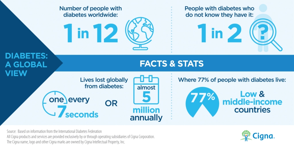 Is it you or the person next to you who could be walking around with undiagnosed diabetes? According to the International Diabetes Federation, 1 in 12 adults worldwide has diabetes, and 1 in 2 adults with diabetes hasn’t been diagnosed. Diabetes occurs when the pancreas produces very little or no insulin, or when the body doesn’t respond appropriately to insulin.